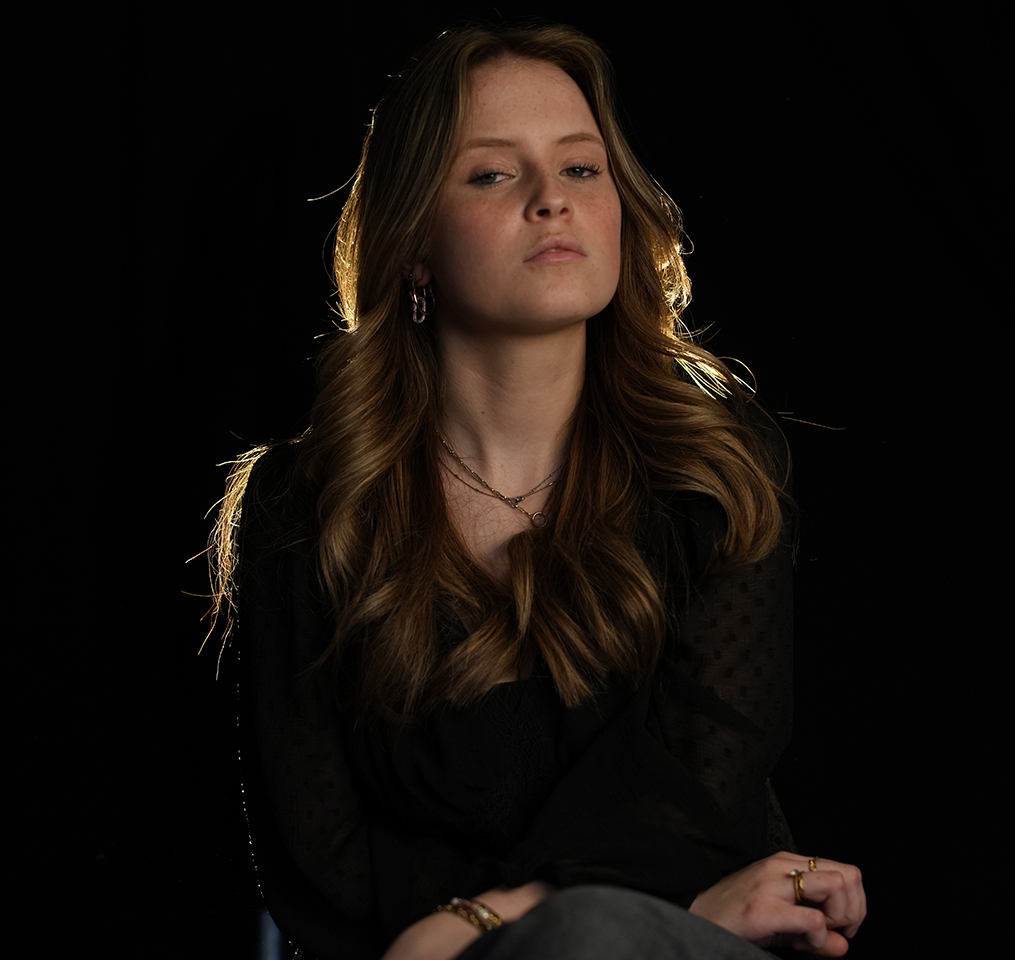 Gerrit den Besten heeft tijdens de cursus portretfotografie deze mooie foto gemaakt. De opdracht was een glamourfoto te maken met onder andere backlight (een fotolamp verlicht het model van achteren ).